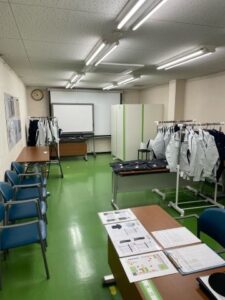 当日は、従業員同士でサイズを相談し合ったり、何度も着用して確認するなど、和やかな雰囲気の中で進められました。