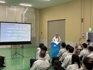 毎年、管理職以上全員が一堂に会して、来期の方針説明の場を設けています。